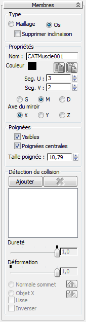 Après avoir créé un Muscle CAT, vous pouvez modifier la façon dont il est segmenté, ses propriétés de détection de collision, etc.