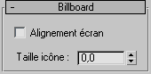 Toute forme géométrique liée à l'assistant Groupe de fonctions d'affichage pivote autour de l'axe Z local de ce dernier, de sorte à faire face à l'observateur. Etant donné que l'objet lié à l'assistant Billboard tourne autour de ce dernier, il est souhaitable de les centrer l'un sur l'autre.