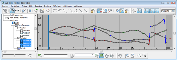 Ce filtre réévalue les courbes de rotation pour réduire le nombre de sauts de rotation à 180° d'un composant spécifique. Vous pouvez modifier ou déplacer ces sauts de rotation et/ou Gimbal Lock avec ce filtre, sans affecter visuellement l'animation obtenue.