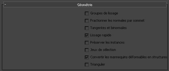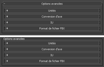 | Version FBX | Emplacement des valeurs prédéfinies |