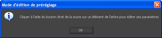 Vous pouvez créer vos propres valeurs prédéfinies avec des options spécifiques au genre d'importation ou d'exportation que vous souhaitez réaliser. Vous avez également la possibilité de modifier les valeurs prédéfinies existantes grâce aux paramètres d'options personnalisées et à la disposition de l'IU en utilisant le mode d'édition de préréglage. Voir Edition d'une valeur prédéfinie.