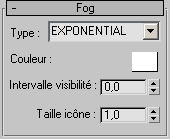 Indique le type de brouillard (linéaire ou exponentiel). Le premier type signifie que la fusion s'accroît linéairement avec la distance. Avec le deuxième type, l'accroissement de la fusion est exponentiel, ce qui crée un effet de brume plus naturel.