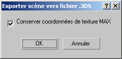 Si vous choisissez 3DS comme format de fichier d'exportation, entrez un nom de fichier, puis cliquez sur Enregistrer. La boîte de dialogue Exporter scène vers fichier .3ds s'affiche.
