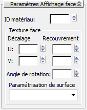 Utilisez ces paramètres pour définir les propriétés du matériau et de la texture telles que d'ID, le décalage et le recouvrement des faces sélectionnées.