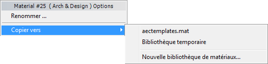 Affiche un sous-menu répertoriant les autres zones Navigateur de matériaux/maps vers lesquelles vous pouvez copier ce matériau ou cette map.