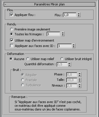 Remarque : La texture Miroir plan ne fonctionne pas avec les rendus