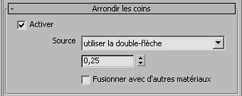 Cliquez sur le bouton pour appliquer une map à ce paramètre (dans l'éditeur de matériaux détaillé, vous pouvez également raccorder les coins arrondis source douille). Le mapping du rayon de raccord crée des variations dans la quantité d'arrondi des coins.
