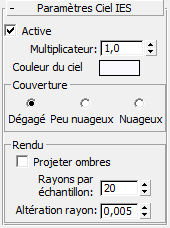 Ciel IES est un objet lumière basé sur un modèle physique qui simule les effets atmosphériques sur le dôme de lumière (IES signifie Illuminating Engineering Society).