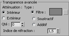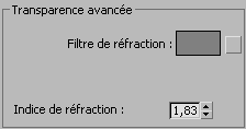 Pour l'ombrage translucide, la zone Transparence avancée est vide.