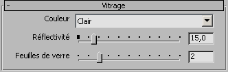 Gère la réflectivité des plaques de verre. Intervalle : de 0,0 à 50,0. Valeur par défaut = 10,0.