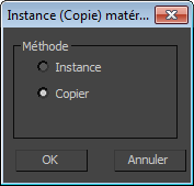 Zone Matériaux scène (ou toute bibliothèque) vers la vue active. 3ds Max ouvre une boîte de dialogue Instance (Copie). Choisissez Copier, puis cliquez sur OK.