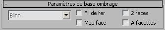 Le panneau déroulant Paramètres de base ombrage permet de choisir le type d'ombrage à utiliser avec un matériau standard. Quelques options supplémentaires affectent l'affichage du matériau.