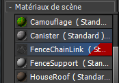 Entrée d'un matériau dans le Navigateur de matériaux/maps dont l'option Afficher le mapping dans la fenêtre est activée