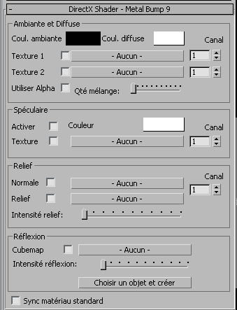Dans l'ombrage DirectX - Panneau déroulant Relief métal 9, toutes les maps possèdent les mêmes contrôles généraux.