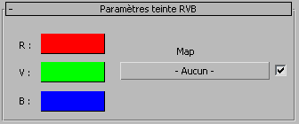 Teinte RVB ajuste la valeur des trois canaux de couleurs dans une image. Trois échantillons de couleur représentent ces canaux. La modification d'un échantillon module la valeur du canal couleur associé.