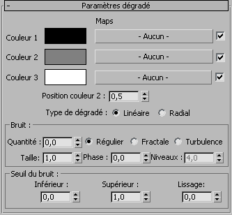 Affiche une map au lieu de la couleur. Les maps sont fusionnées en dégradé de la même façon que les couleurs dégradées. Vous pouvez ajouter des dégradés procéduraux imbriqués dans chaque fenêtre pour créer des dégradés de 5, 7, 9 couleurs ou plus.