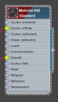 Lorsque vous modifiez des matériaux et des maps, ils apparaissent dans la vue active en tant que " noeuds " que vous pouvez mettre en relation.