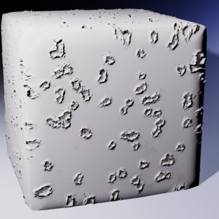 Cette rubrique fournit, pour référence, une liste alphabétique de toutes les substances incluses et des échantillons d'images rendues appliquées à un cube. Dans la plupart des cas, les sorties de la map Substance utilisées sont de coloration diffuse, de niveau spéculaire et présentent un déplacement en hauteur.
