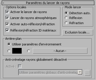 Paramètres Lancer de rayons pour ouvrir le panneau déroulant Paramètres globaux du lanceur de rayons.