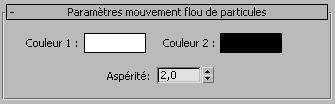Plus la particule accélère, plus elle se rapproche de cette couleur. Par défaut, la couleur 2 est le noir, de façon à produire l'effet de transparence d'une map d'opacité.