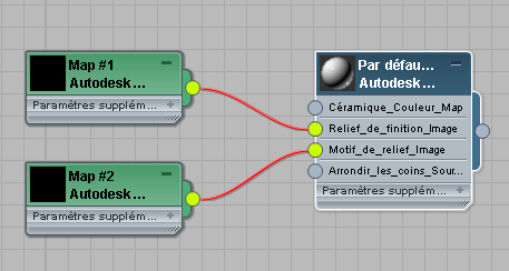 Cliquez sur le bouton Map (ou utilisez la liaison de noeud de l'Editeur de matériaux détaillé) pour attribuer une texture au matériau.