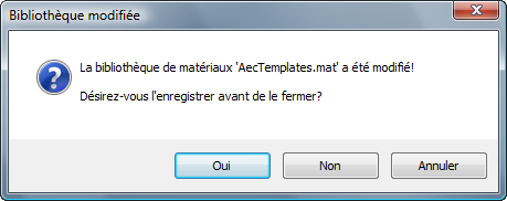 3ds Max vous demande si vous souhaitez enregistrer les modifications apportées à la bibliothèque. Cliquez sur Oui.