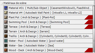 La liste des matériaux/textures est organisée en plusieurs groupes.