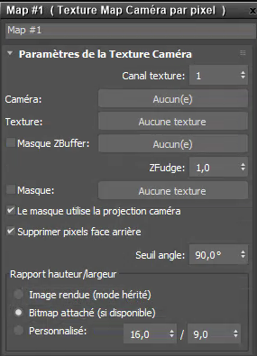 Cette caméra doit correspondre à celle utilisée pour le rendu de la texture utilisée dans les composants Texture et Masque ZBuffer.
