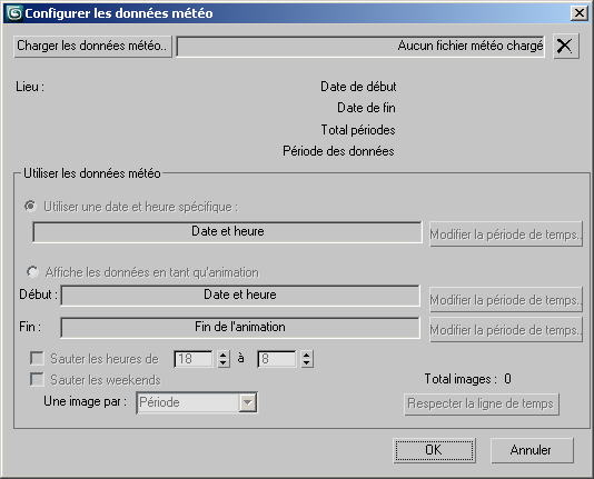 La boîte de dialogue Configurer les données météo vous permet de choisir le contenu d'un fichier (EPW) des données météo que vous voulez utiliser.