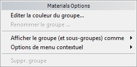 Les menus des groupes Matériaux, maps, Contrôleurs et leurs sous-groupes disposent tous des mêmes options.