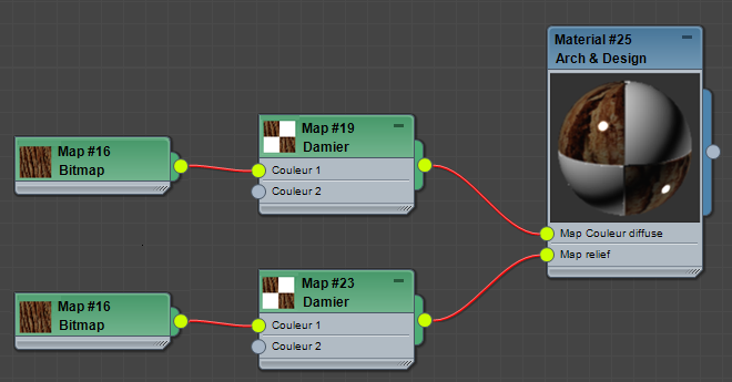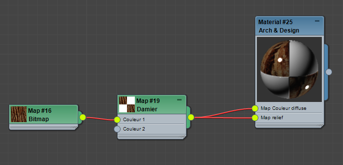 Après avoir cliqué avec le bouton droit sur un fil entre le bitmap et le matériau, sélectionnez Rendre la branche unique