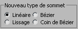 Les quatre cases d'option de cette zone vous permettent de déterminer la tangence des sommets créés lors du clonage de segments ou de splines en maintenant la touche Maj enfoncée. Si vous utilisez ultérieurement l'option Connecter copie, le type des sommets des splines qui relient la spline ou le segment d'origine au nouveau est spécifié dans cette zone.