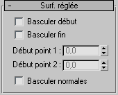 Permettent de régler la position du point de départ sur les deux courbes qui définissent la surface réglée. Le réglage des points de départ facilite l'élimination des torsions ou des " boucles " indésirables de la surface.