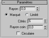 Distance entre le centre du rayon et l'arête. Vous disposez de deux méthodes pour indiquer le rayon :