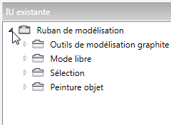 4. Dans le groupe de fonctions du milieu, IU existante, cliquez sur la flèche à gauche de l'entrée Ruban pour en développer l'arborescence.