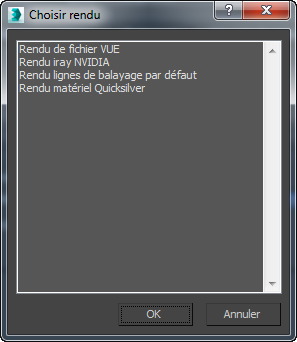 Cette boîte de dialogue s'affiche lorsque vous cliquez sur l'un des boutons Choisir rendu ("...") du panneau déroulant Affecter rendu.