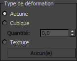 Gauche : aucune déformation ; Milieu : déformation cubique = 0,14 ; droite : déformation cubique = – 0,14