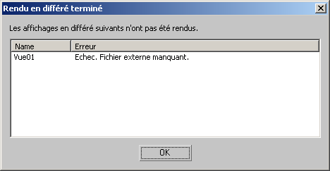 Cette boîte de dialogue vous indique les rendus en différé qui n'ont pas fonctionné. Dans la mesure du possible, fournit la raison de cet échec.
