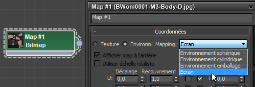 3. L'éditeur de matériaux permet de changer le type de mapping de la map à l'écran.