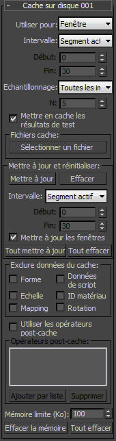 L'opérateur Cache sur disque fonctionne de manière similaire à l'opérateur Cache fourni avec le système de flux de particules d'origine, si ce n'est qu'il permet d'enregistrer le cache dans un fichier disque distinct du fichier MAX.