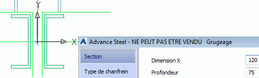 Le grugeage est créé et la boîte de dialogue Propriétés s'affiche. La poutre peut être modifiée pour répondre à des exigences spécifiques. Par exemple, entrez la largeur et la profondeur sous l'onglet Forme de la boîte de dialogue Grugeage.