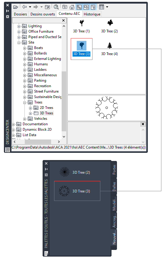 - Dans l'onglet Contenu AEC, naviguez jusqu'au dossier comportant le contenu AEC à partir duquel vous voulez créer un outil.