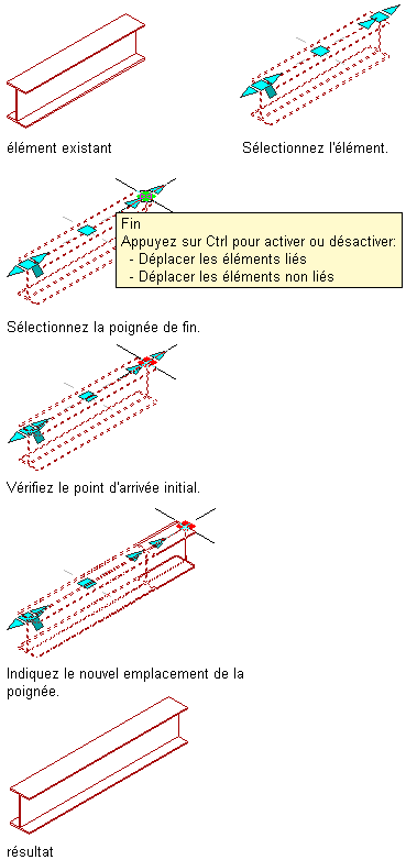 Cette procédure permet de modifier les points de départ et d'arrivée d'un élément de structure. Vous pouvez également modifier les points de début et de fin des éléments de structure dans la palette des propriétés.