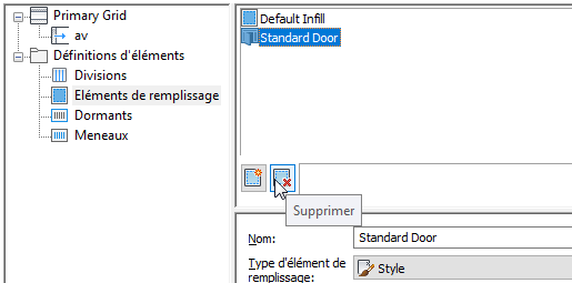 Cette procédure permet de supprimer une définition d'élément de remplissage dont vous n'avez plus besoin. Cependant, vous ne pouvez pas supprimer une définition actuellement affectée à une cellule dans la grille principale ou une grille imbriquée. En outre, vous ne pouvez pas supprimer la définition d'élément de remplissage par défaut, mais vous pouvez la modifier au besoin.