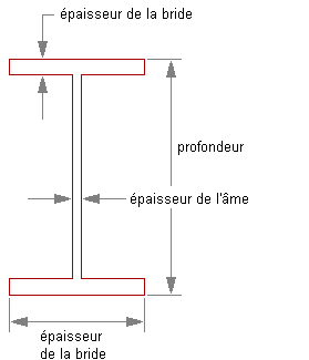 Par exemple, les cotes de la poutre en acier sélectionnée dans l'illustration précédente sont notamment la profondeur (p), la largeur (la) et l'épaisseur de la bride (eb) et l'épaisseur de l'âme (eâ). Lorsque vous créez un style, ces cotes créent la forme suivante qui sera ensuite stockée dans le style.