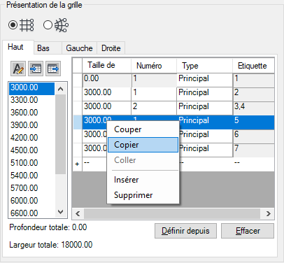 Remarque : La colonne Etiquette est en lecture seule et montre l'étiquette de grille pour la ligne de grille associée. Vous pouvez changer l'étiquetage de la grille dans les Paramètres de bulles ci-dessous.