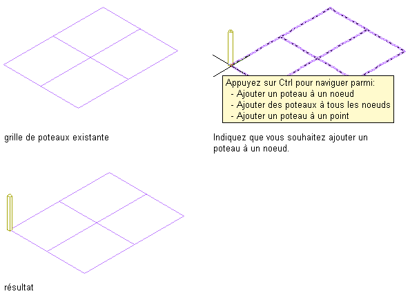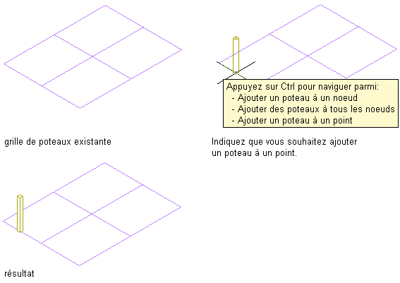 | ajouter un poteau à un noeud spécifique de la grille | déplacez le curseur sur le noeud ou à proximité, puis cliquez. Un poteau est ajouté au noeud le plus proche de la position du curseur. |