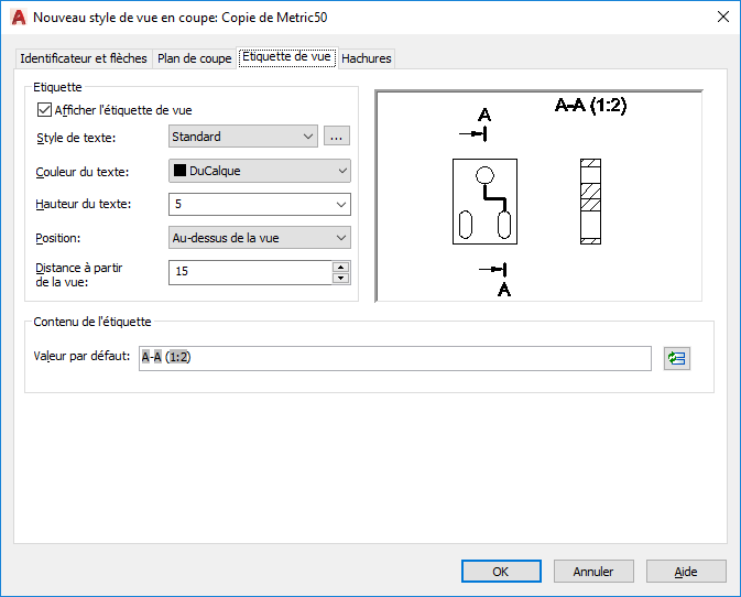 Onglet Etiquette de vue (Gestionnaire de styles de vue en coupe)
