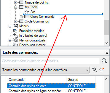 - Faites glisser la commande à repositionner sur une barre d'outils.
