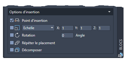 Quatre éléments sont impliqués dans l'insertion de blocs dans un dessin.